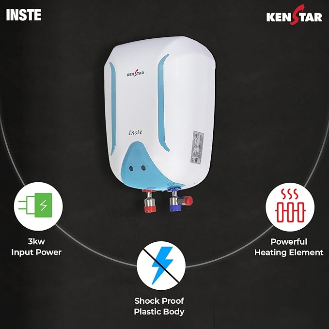Kenstar Inste 3L 3KW Vertical Instant Water Heater (Geyser) | Faster Heating | Suitable for High Rise Buildings & Low Rise | 3 Levels of Safety |2 Years Warranty (WHITE And TURQUOISE), Wall Mounting